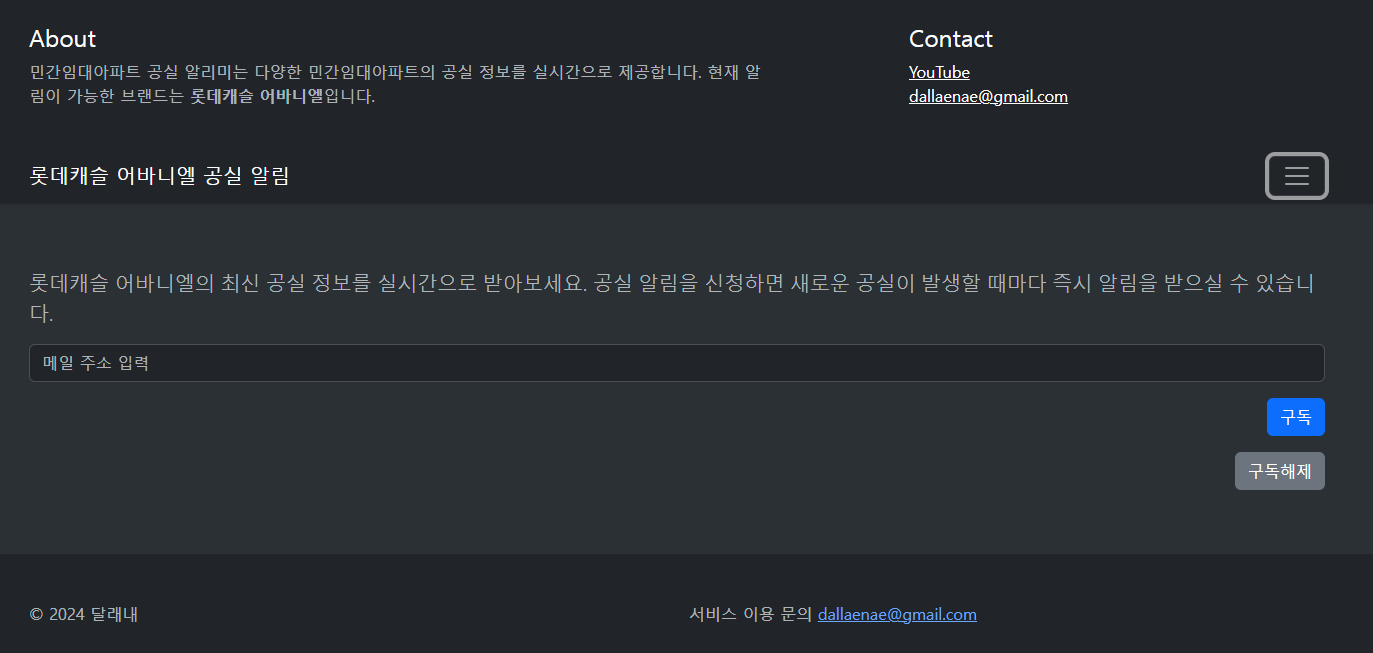 사이트에 접속하여 알림을 받을 메일 주소를 입력하고 구독버튼을 누르면 된다.