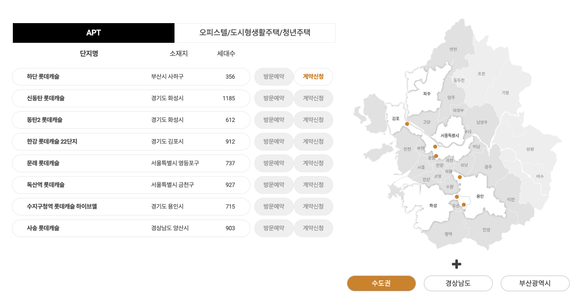 롯데건설 민간임대 공실 알리미 - 아파트/오피스텔/도시형생활주택/청년주택