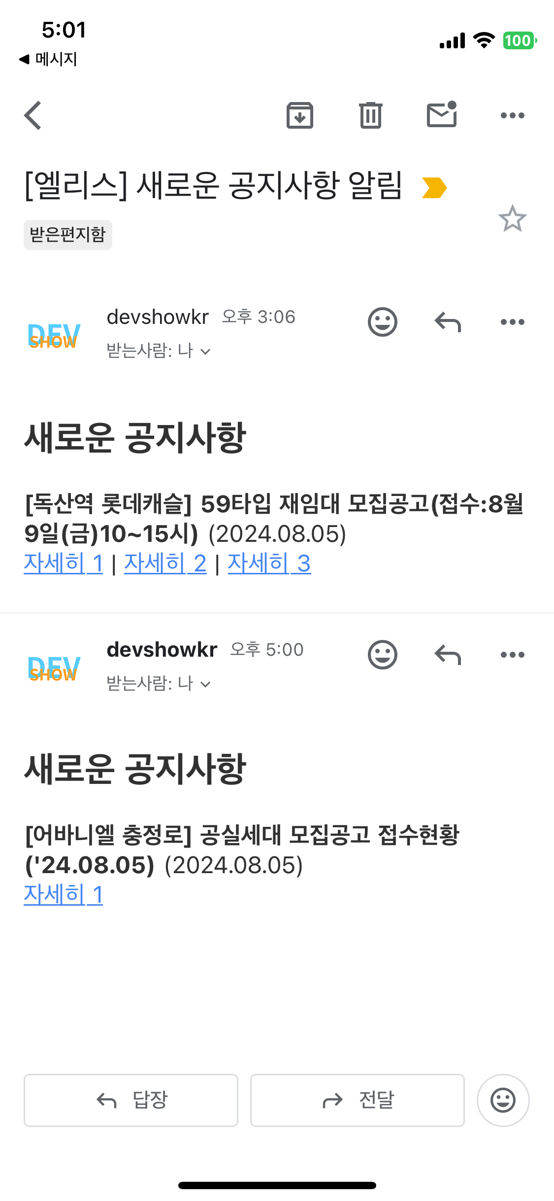 엘리스에 새로운 공지사항이 올라오면 등록한 메일주소로 알림 메일이 발송된다.